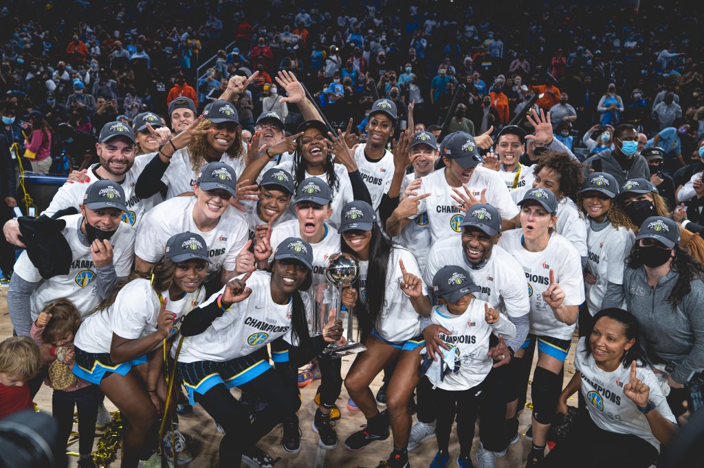 WNBA Finals 2021. Candace Parker and the Chicago Sky beats Phoenix and clinchs the 2021 WNBA title. The second champion title for Candace Parker after winning with Los Angeles in 2016.