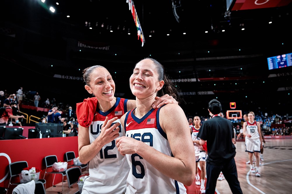 Tokyo Olympic Games 2021. Basketball tournament. Men’s and Women’s Team USA win the gold medal, the 5th for basketball legends Sue Bird and Diana Taurasi.