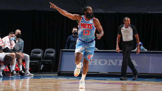 NBA regular season 2021. For his first game with Brooklyn after a huge trade, James Harden scores 32 points, 11 rebounds and 14 assists.