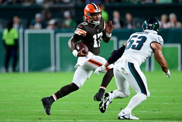 This year, especially in the first practice, the Browns defensive line came to play. Even with Myles Garrett banged up — he hurt his foot on Monday and didn’t do team drills on Tuesday — the defensive line delivered on its promise thanks to Za’Darius Smith, Ogbo Okoronkwo and Dalvin Tomlinson. They rarely allowed Jalen Hurts to get comfortable.
